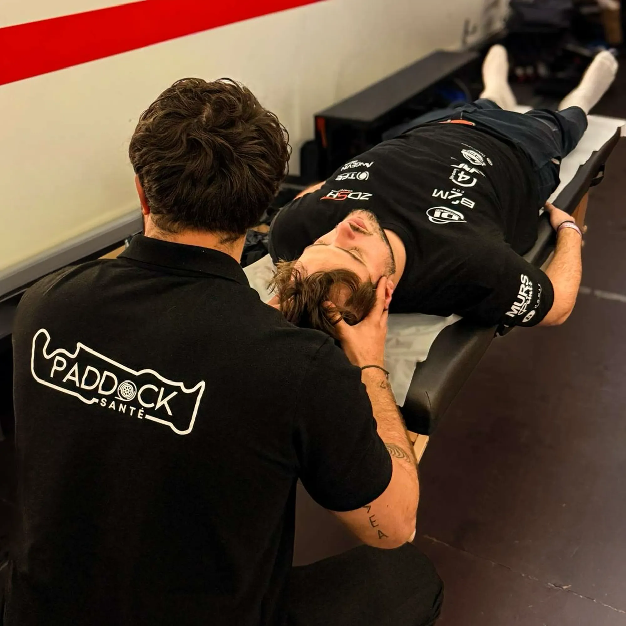 Paddock Santé optimise la condition physique et mentale des pilotes grâce à des soins ciblés sur le terrain.
